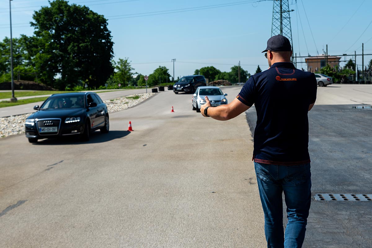 Kandidat, ki je že pridobil vozniško dovoljenje za kategorijo A1 in se usposablja za kategorijo A2 ali kandidat ki je že pridobil kategorijo A2 in se usposablja za kategorijo A na poligonu Centra varne vožnje Murska Sobota.
