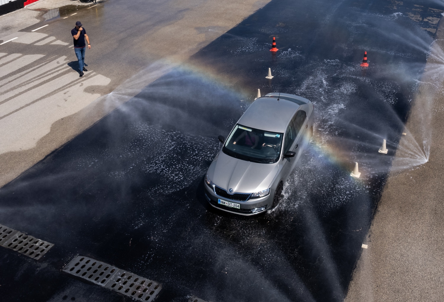 - Spolzke površine in vodne ovire za učenje obvladovanja vozila v zahtevnih razmerah